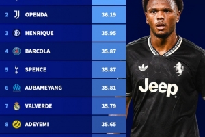 本赛季欧冠最快速度排名:奥蓬达36.19KM/H第二,弗林蓬进前10