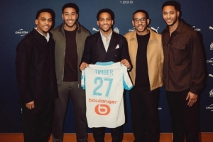 一共五兄弟!朱利安·廷伯参加双胞胎昆滕·廷伯加盟马赛签约仪式