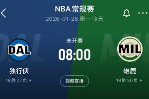 体育资讯01月26日讯 ESPN名记Shams报道,原定北京时间今日早晨8:00进行的雄鹿主场迎战独行侠的NBA常规赛,因天气原因推迟。