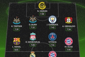 Whoscored评欧冠联赛阶段最佳阵:姆巴佩领衔,凯恩、亚马尔在列