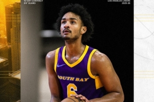本赛季他为南湾湖人队出战14场比赛,场均上场33分钟,得到26.7分4.9篮板4.7次助攻1.2次抢断和1.1次盖帽。