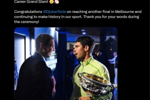 “同时也祝贺德约科维奇在墨尔本再次杀入决赛,并继续在我们的运动中创造历史。感谢你在颁奖仪式上说的那些话!”