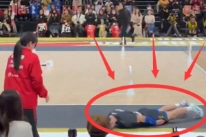 日本男排国家队主力西田有志在技巧挑战环节的发球准度挑战中,不慎将球击中场边一位女性工作人员头部。