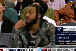 加兰现身快船替补席!转播方着重提醒:加兰才26岁 哈登36岁了