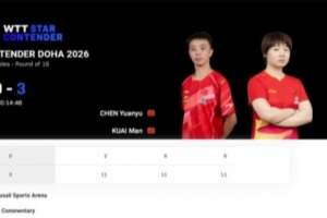 体育资讯1月15日讯 2026年WTT球星挑战赛多哈站混双1/8决赛,陈垣宇/蒯曼3-0库瓦里/埃尔巴兹,晋级八强。