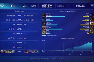 体育资讯1月16日讯 LCK杯T1二比一击败HLE,赛后决胜局数据面板,Doran阿卡丽打出的全局伤害大于Zeka沙皇+Gumayusi烬的伤害总和。